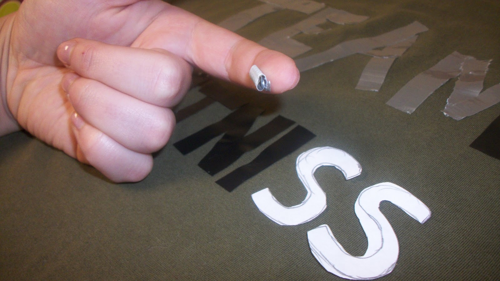 | At first, I put the tape directly on my shirt, but drawing it out worked so much nicer. I used the sketch as a template then taped over it and transferred. |