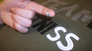 | I used a paper template for the “S”s which made me nervous because of bleeding, I put some tape on them to make them stick |