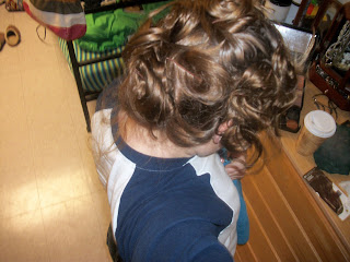 I curled my damp hair and tucked it in with bobby pins. Â I left it overnight.