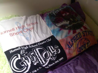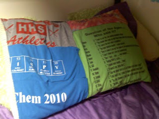 I did this over spring break and never got around to sharing it.  I took a bunch of old t-shirts and made them into a pillowcase!  All the shirts were from high school; so, I call it my “high school pillow.”